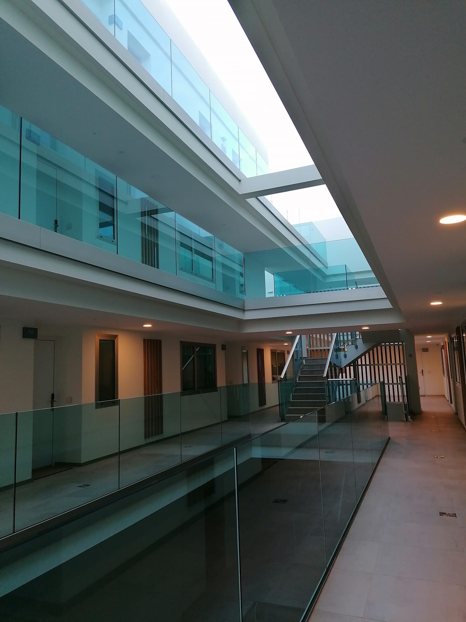 Our team is specialized in cleaning Large Glass surfaces, Glass curtains, Glass Railings, removing limescale or other hard residue substances.
